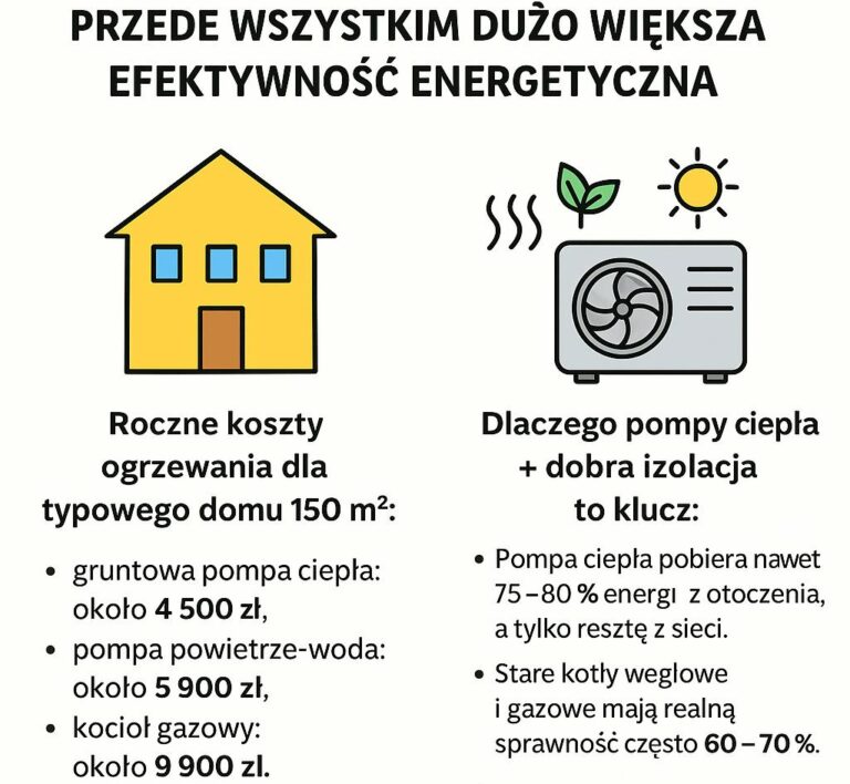 Pompy ciepła stały się symbolem nowoczesnego ogrzewania, ale ich największą zaletą nie jest moda na „eko”, tylko realna efektywność energetyczna. Według najnowszego raportu Polskiego Alarmu Smogowego pompa ciepła może ogrzewać dom nawet dwukrotnie taniej niż gaz. A w dobrze ocieplonym budynku rachunki spadają nawet o połowę. Ile kosztuje ogrzewanie pompą ciepła?Z danych PAS z 2025 roku…